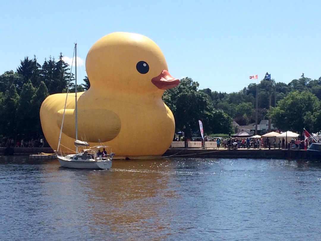 “Everywhere the duck goes, it helps to generate interest for waterfront festivals, helping organizers exceed their attendance expectations,” continues the stranger nonchalantly. “Owen Sound’s mayor, for instance, has been doing media interviews about the duck in places as distant as the Kitchener-Waterloo region – and expects attendees from all across the Georgian Triangle.”